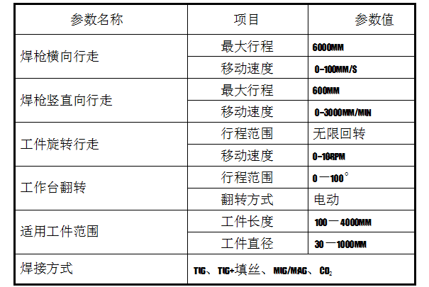工件裝卡采用軸管中心孔三爪氣動卡盤定位,尾座氣動頂緊方式;工件回轉(zhuǎn)采用步進(jìn)電機(jī)調(diào)速、恒轉(zhuǎn)矩輸出,速度平穩(wěn);機(jī)頭橫向和縱向電機(jī)采用伺服電機(jī)驅(qū)動,使用螺旋焊接范圍寬,速度平穩(wěn);尾座沿縱向可調(diào),可適應(yīng)多品種焊接。焊接實(shí)施等功能均由控制盒的按鈕實(shí)現(xiàn),操作簡單,便捷,操作采用人機(jī)界面可進(jìn)行參數(shù)的更改,數(shù)控焊接專機(jī)參數(shù)的修改可通過觸摸式按鍵,方便及時的輸入;該焊接專機(jī)以松下可編程序控制器為核心組成自動焊接控制系統(tǒng),自動化程度高,提高工作效率,減少焊接變形。